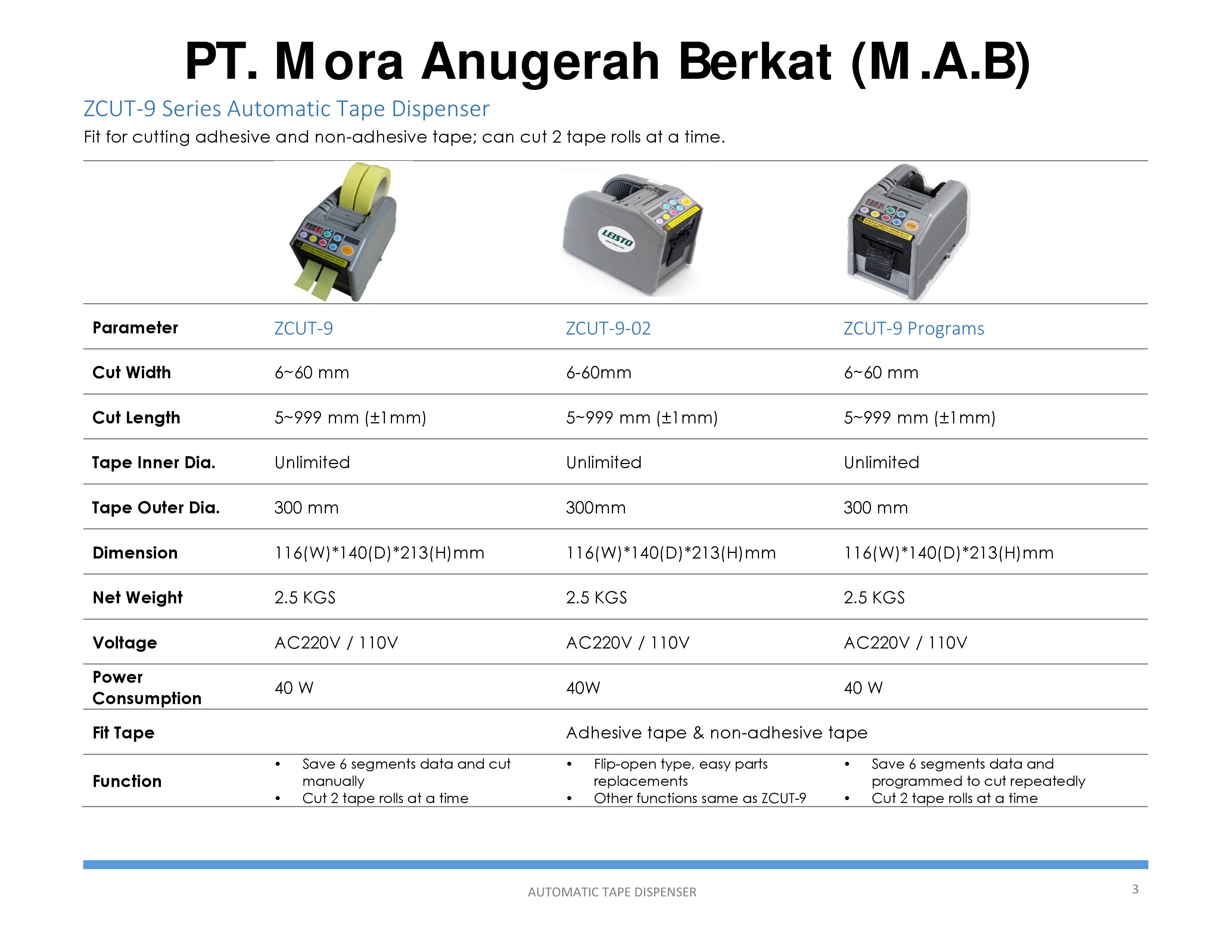 Click Here : Automatic Tape Dispenser ZCUT-9 Brochure