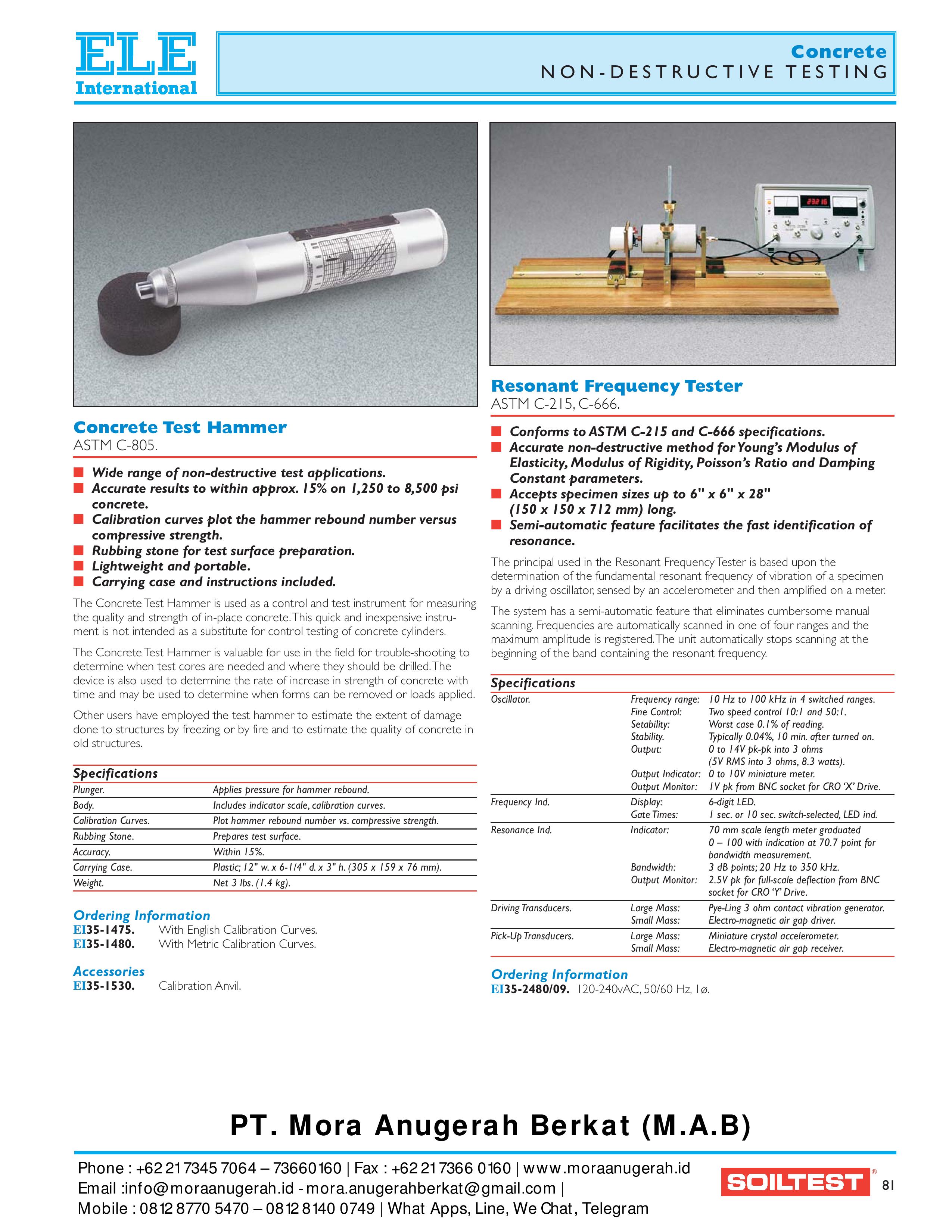 Concrete Testing Equipment Product – Ele InternasionalBy admin Concrete Testing Equipment Product – Ele Internasional Download Here : ELE International_Soiltest – Concrete_MAB