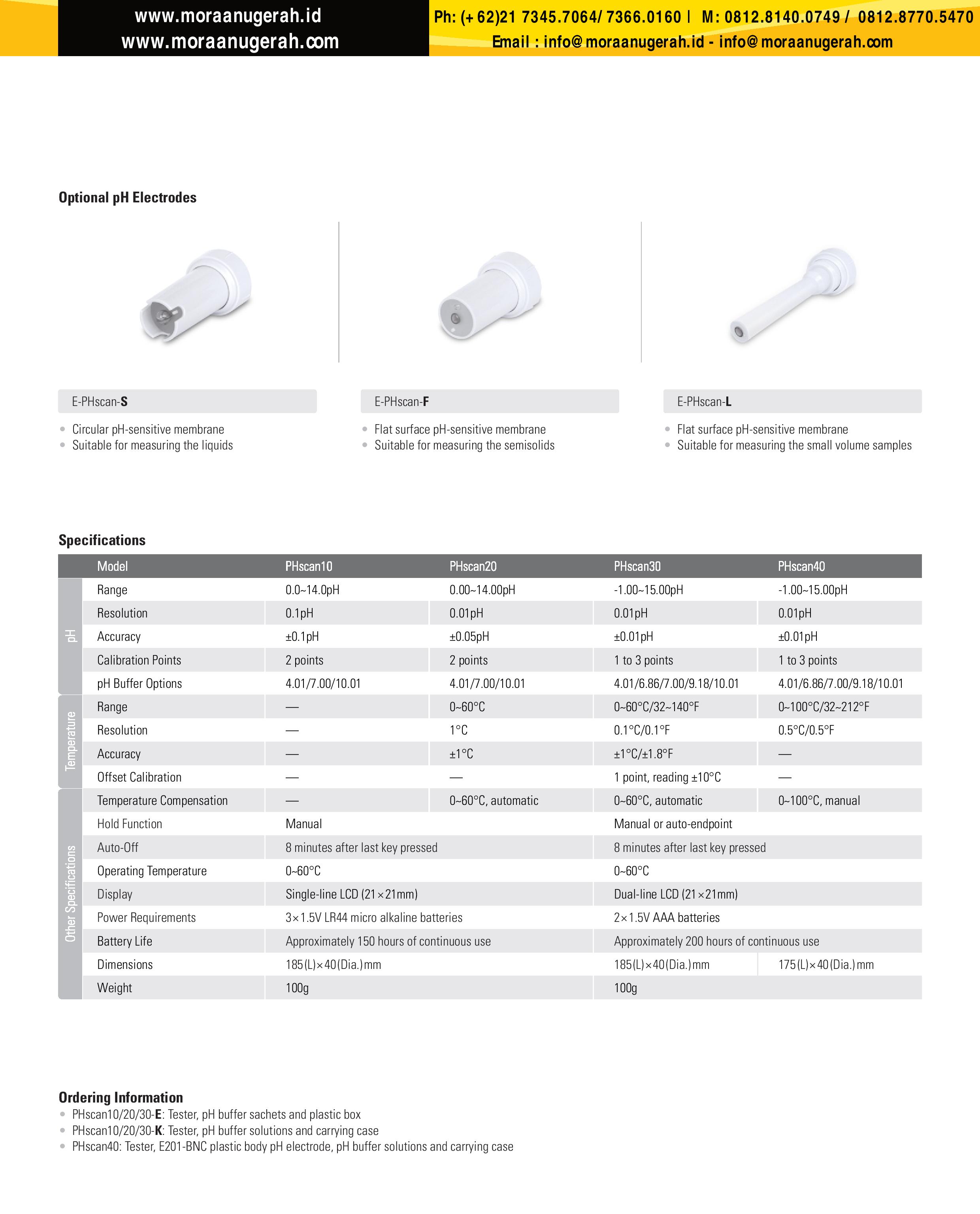 | Range | 0.0~14.0pH | 0.00~14.00pH | -1.00~15.00pH | -1.00~15.00pH |